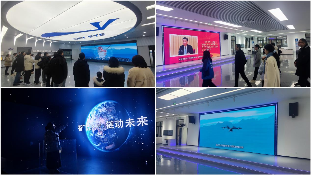其間我們來到翔彭智航展覽中心進(jìn)一步參觀學(xué)習(xí)“低空經(jīng)濟(jì)”產(chǎn)業(yè)的相關(guān)應(yīng)用和產(chǎn)品。步入展覽中心,科技感與創(chuàng)新氛圍撲面而來。開放式的辦公區(qū)域促進(jìn)了團(tuán)隊(duì)間的交流與協(xié)作,獨(dú)立的會(huì)議室配備了先進(jìn)的會(huì)議設(shè)備,讓每一次溝通都更加高效。研發(fā)中心里,精密的儀器閃爍著智慧的光芒,仿佛在訴說著即將誕生的創(chuàng)新成果。而休閑區(qū)域的精心打造,則為員工們提供了放松身心、激發(fā)靈感的溫馨角落。